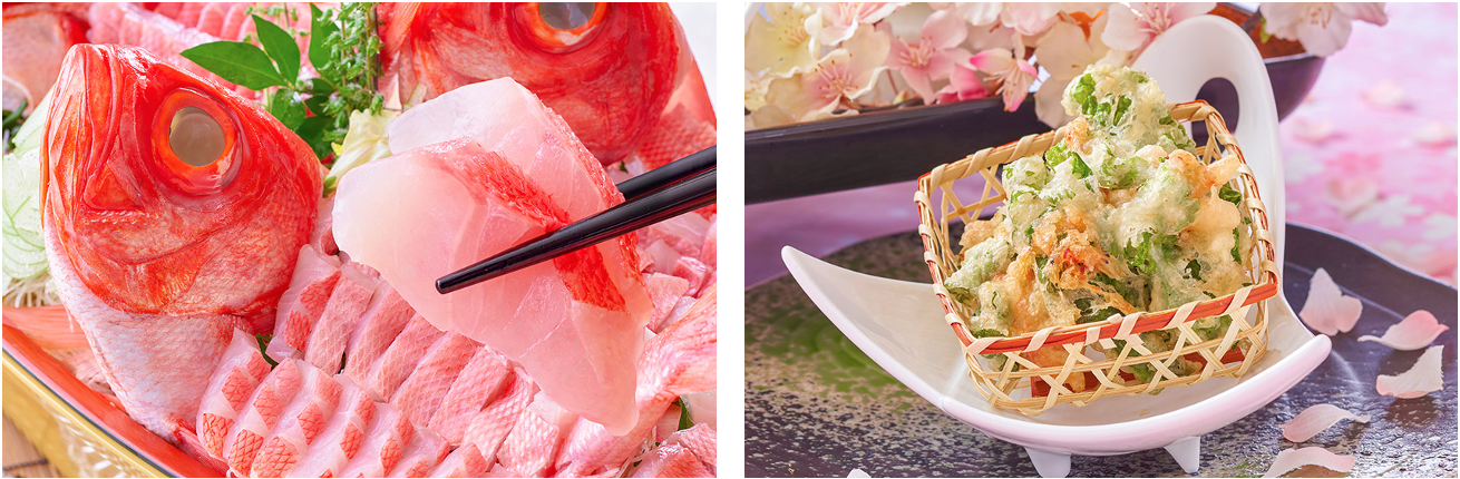 ■ 金目鯛の舟盛り食べ放題!春の山海グルメバイキング
