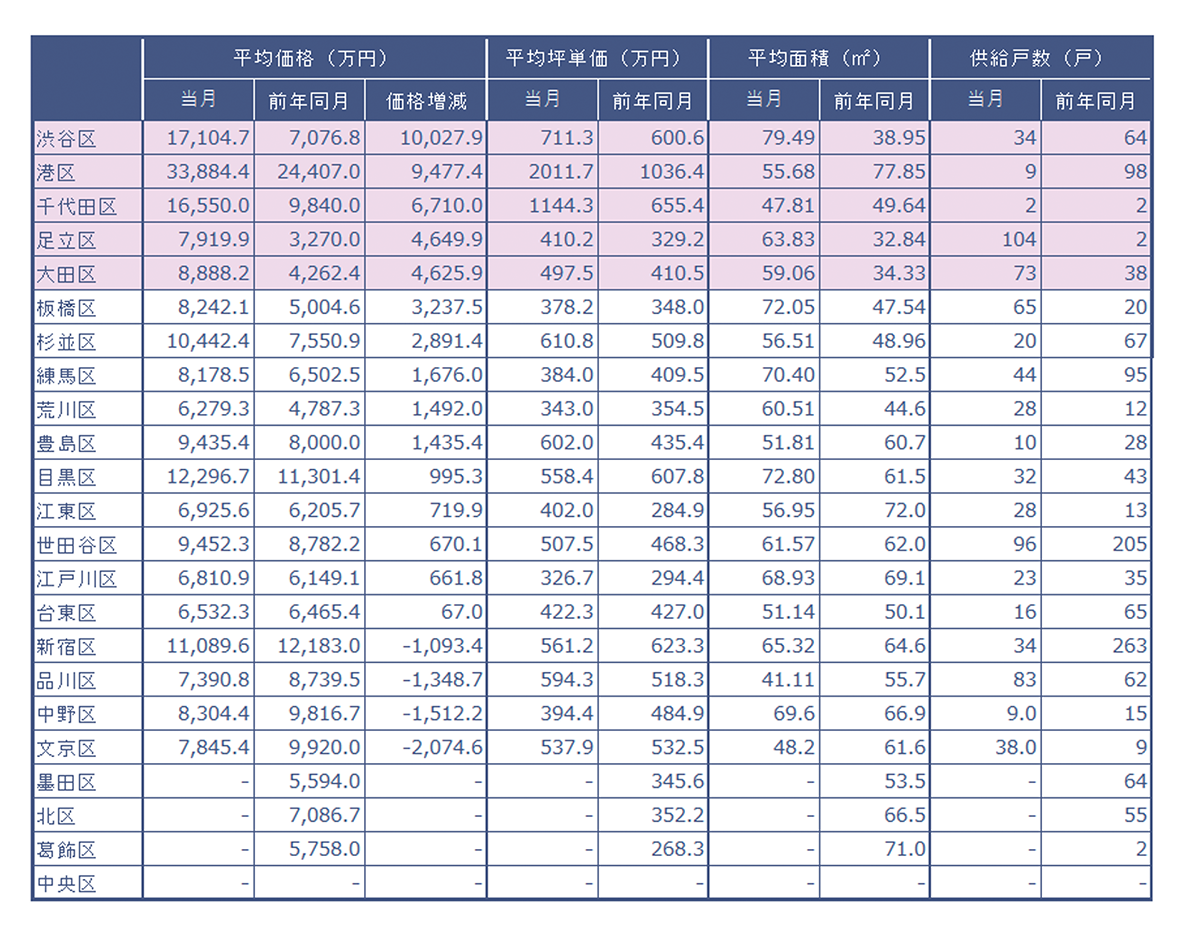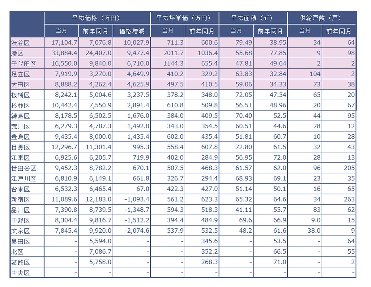 当社が調査した2024年4月の東京23区、行政区別分譲実績データ(速報値)です。