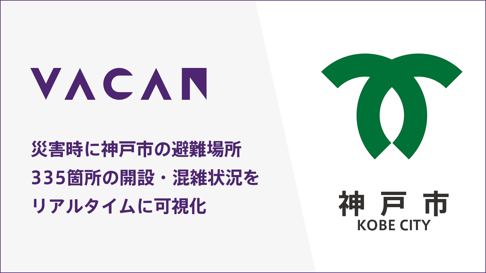 災害時に避難場所335カ所の混雑可視化に活用。兵庫県神戸市に、避難場所の開設・混雑状況をリアルタイムに伝える「VACAN」を提供開始