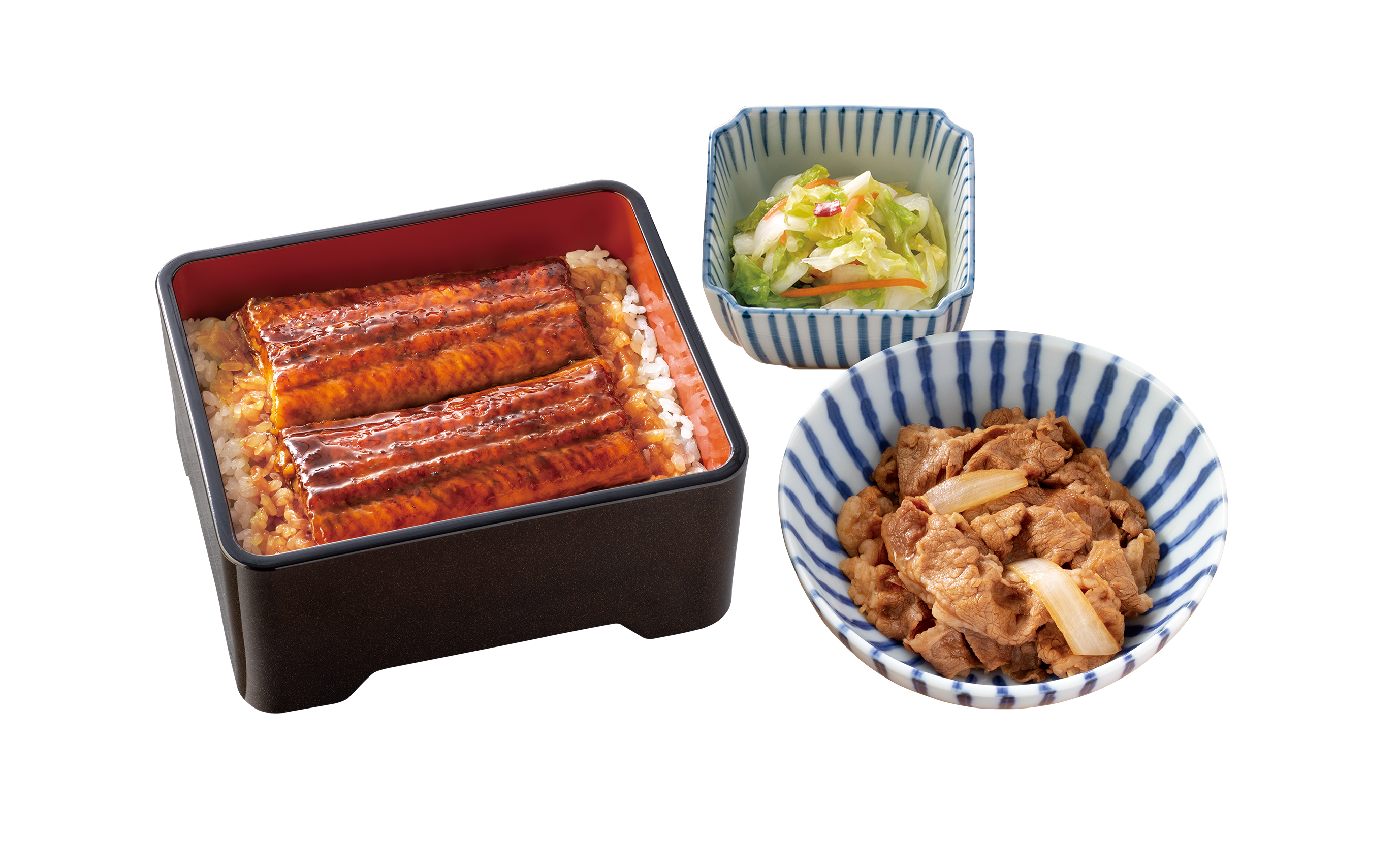 鰻と牛丼の具を両方楽しめる「鰻重牛小鉢セット」も割引対象