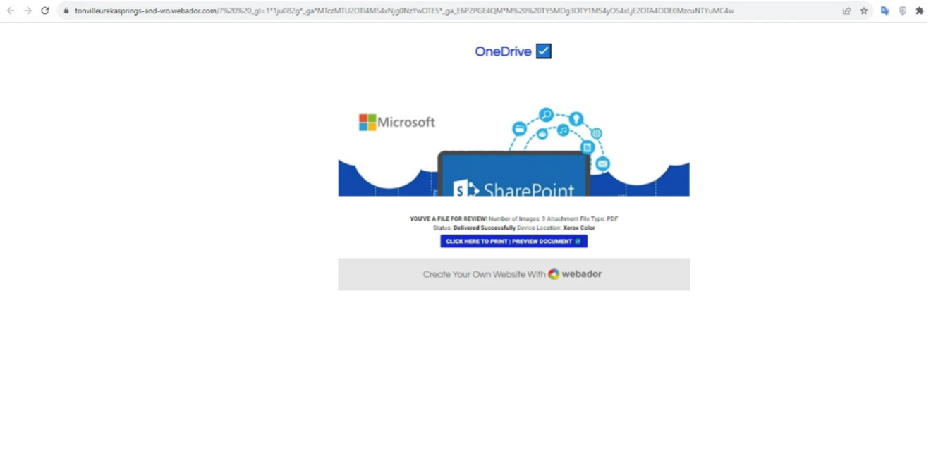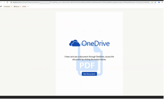 コンテンツはOneDriveに似たページですが、URLはDropboxにホストされています。 "ドキュメントを取得"をクリックすると、ユーザーは最終的に、資格情報を収集するためのページに誘導されます。