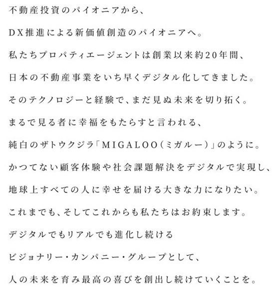 『DX』と『不動産』で価値を創造する企業、プロパティエージェント株式会社(本社:東京都新宿区、代表取締役社⻑:中⻄ 聖、証券コード:3464、以下「当社」)は、当社の単独株式移転により2023年10月2日に設立する持株会社「ミガロホールディングス株式会社」につきまして、東京証券取引所のプライム市場への新規上場が承認されたことと、それに伴いコーポレートロゴを決定いたしましたのでお知らせいたします。