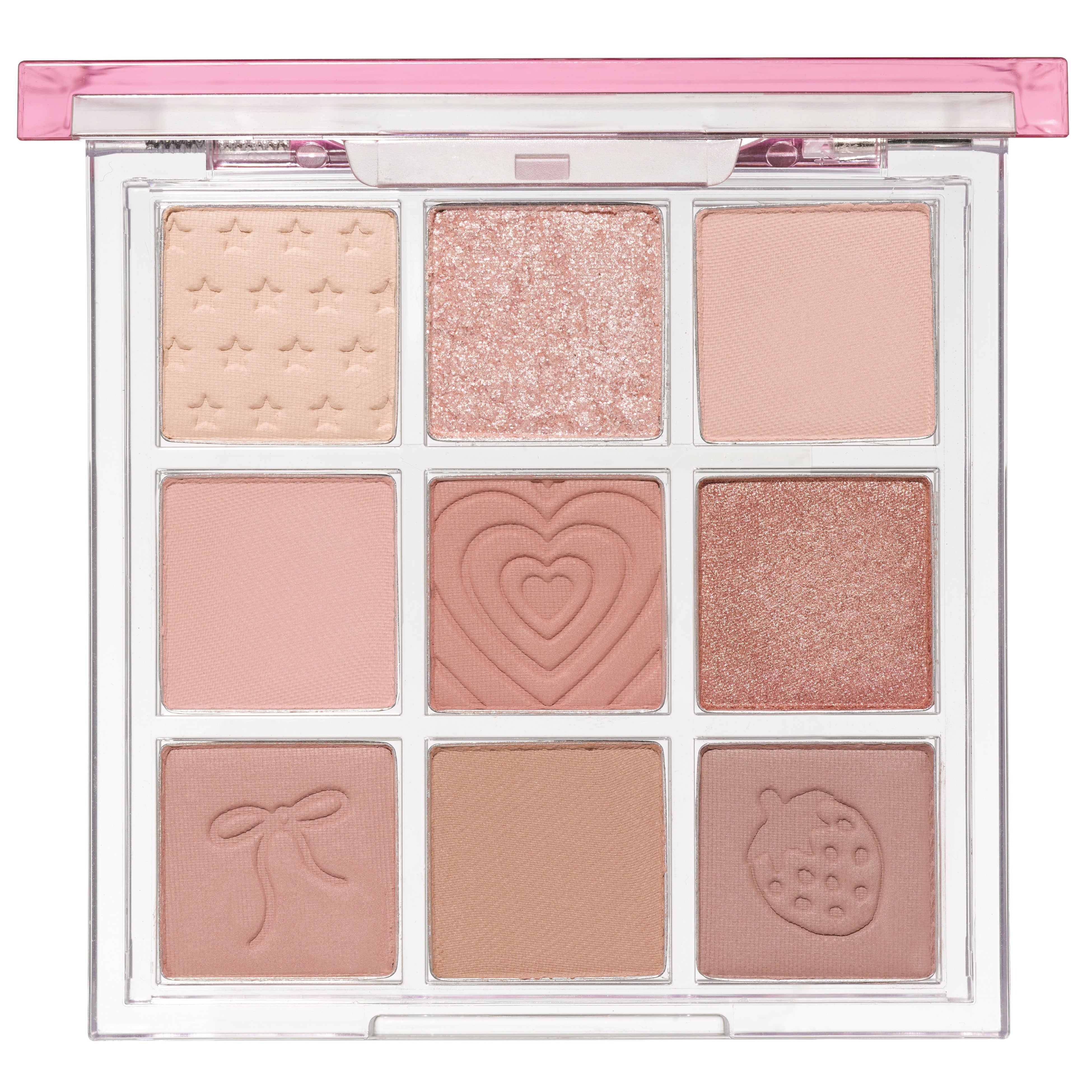 やわらかなピンクマットカラーがまぶたの色味を補正*し、多色の繊細ラメを引き立たせます。
