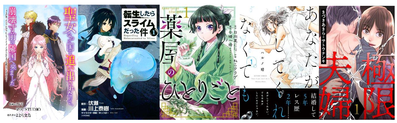 各ジャンルのラインナップは、少女漫画では、Renta!オリジナル縦読みコミック『聖女なのに国を追い出されたので、崩壊寸前の隣国へ来ました~力を解放したので国が平和になってきましたが元の国まで加護は届きませんよ~【フルカラー】』が堂々の1位を獲得!少年漫画では、異世界転生作品で大人気の『転生したらスライムだった件』。また青年漫画からは、大ヒット異色ミステリーの『薬屋のひとりごと』が1位となりました。