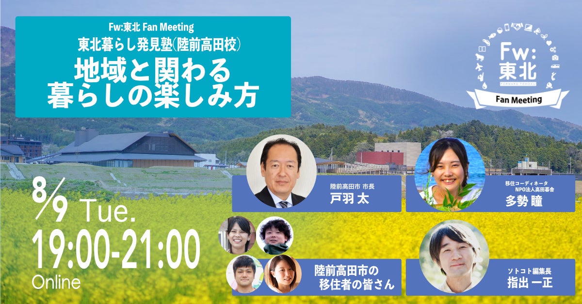 エイチタス株式会社(本社:東京都品川区、代表取締役:原 亮/小澤 剛)は、復興庁主催のワークショップ「Fw:東北(フォワードとうほく) Fan Meeting」にて、「東北暮らし発見塾(陸前高田校) ~地域と関わる暮らしの楽しみ方」の企画運営を行い、8月9日夜に無料のZoomミーティングを開催します。