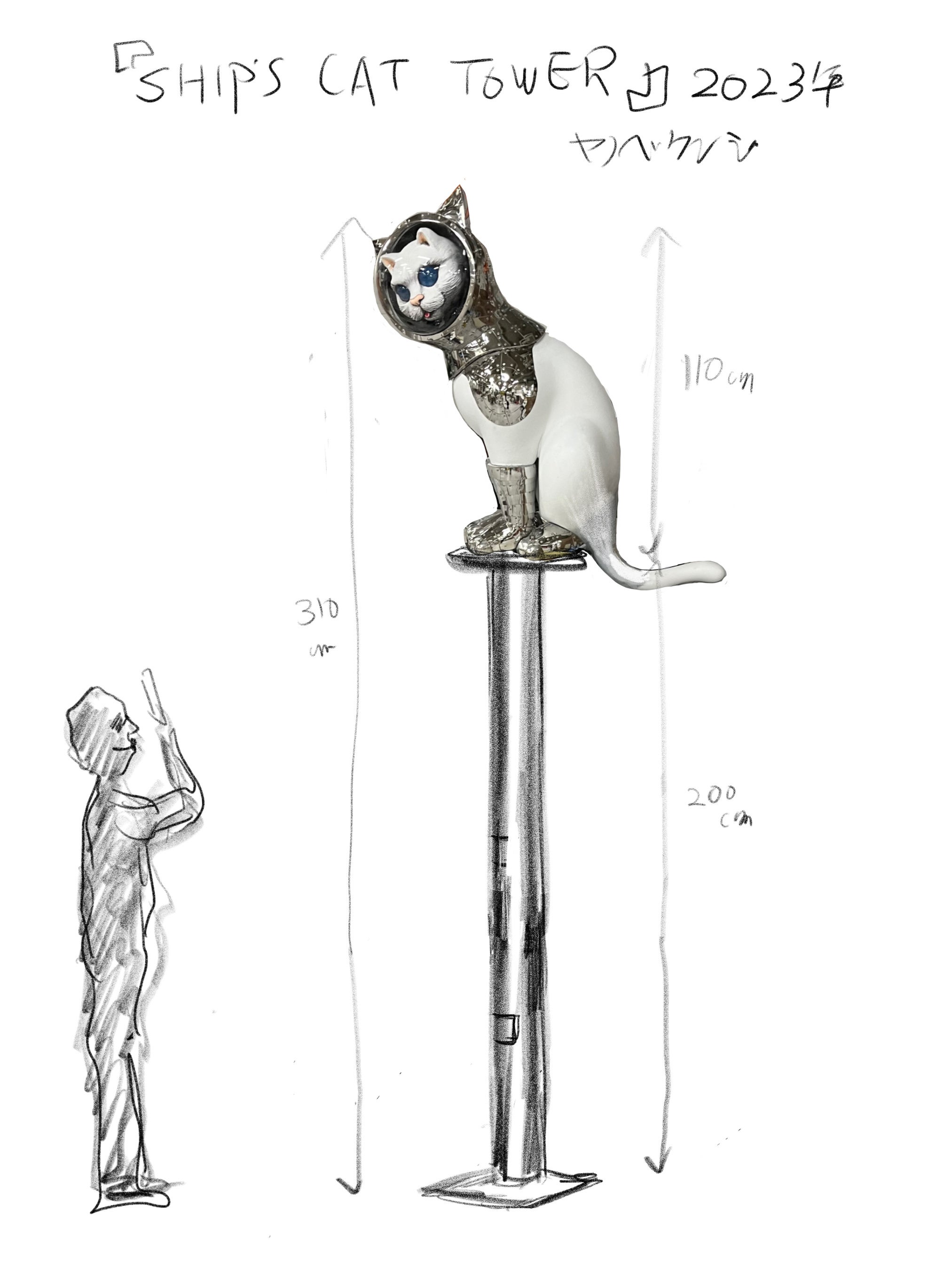 古来より船旅に同伴して世界中を旅した、船乗り猫をモチーフにした旅の守り神《SHIP’S CAT》シリーズの一環として、京都に集う若者の出会いや交流を見守るモニュメントである。