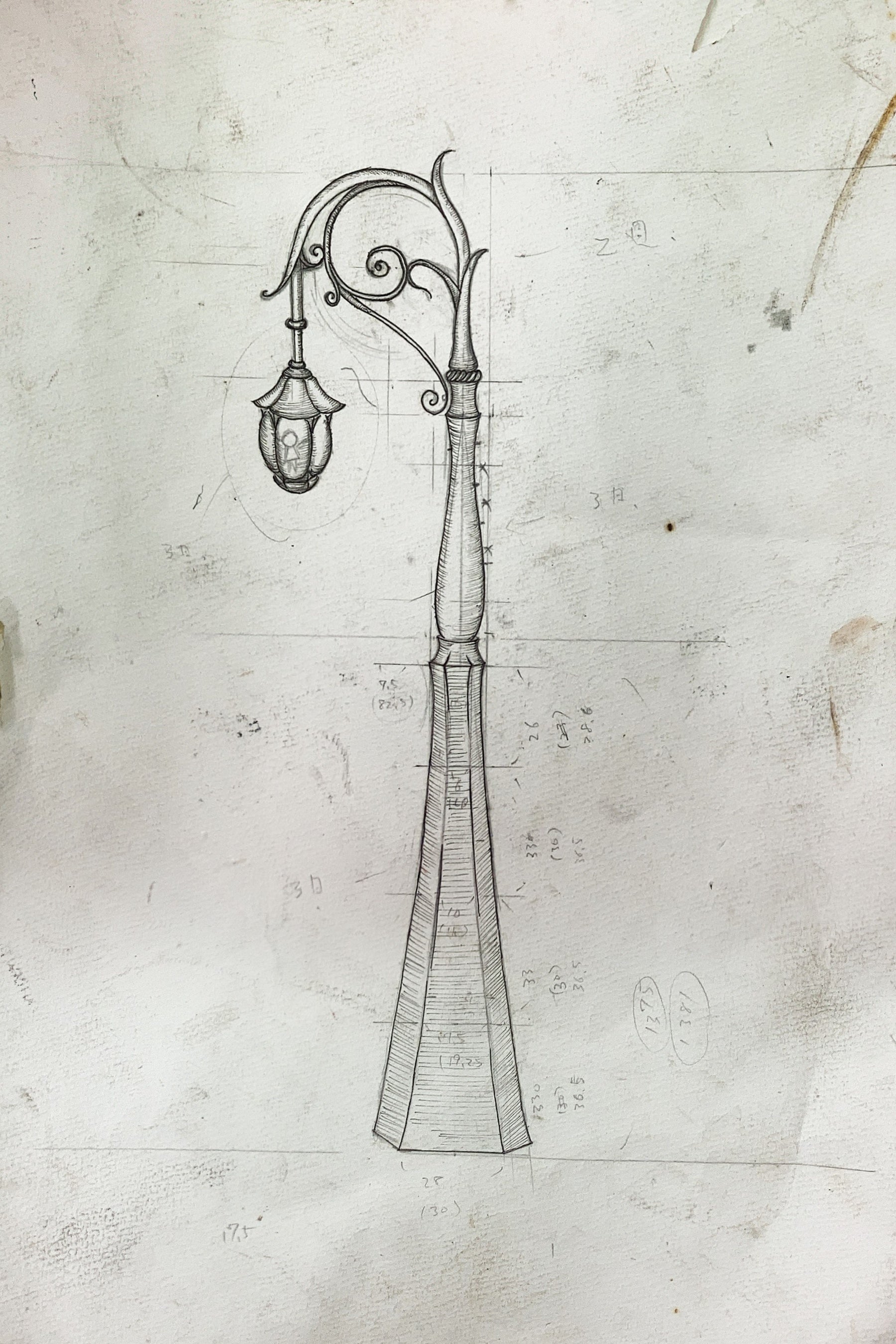 造形された街灯の塔体の中で発光し踊る人形。希望の光の物語を内包するモニュメント。