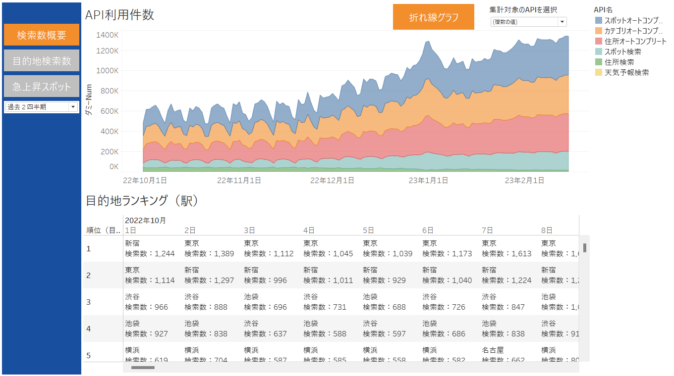 ・利用者が各種設定項目(期間や地域)を変更可能なので、見たい情報を見ることができる