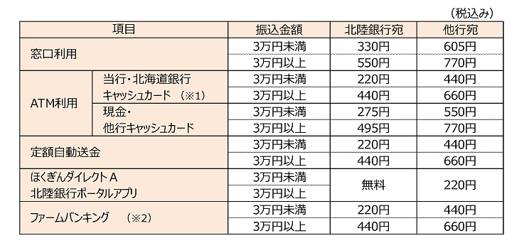 ほくぎんダイレクトA・北陸銀行ポータルアプリ利用による振込手数料の改定について