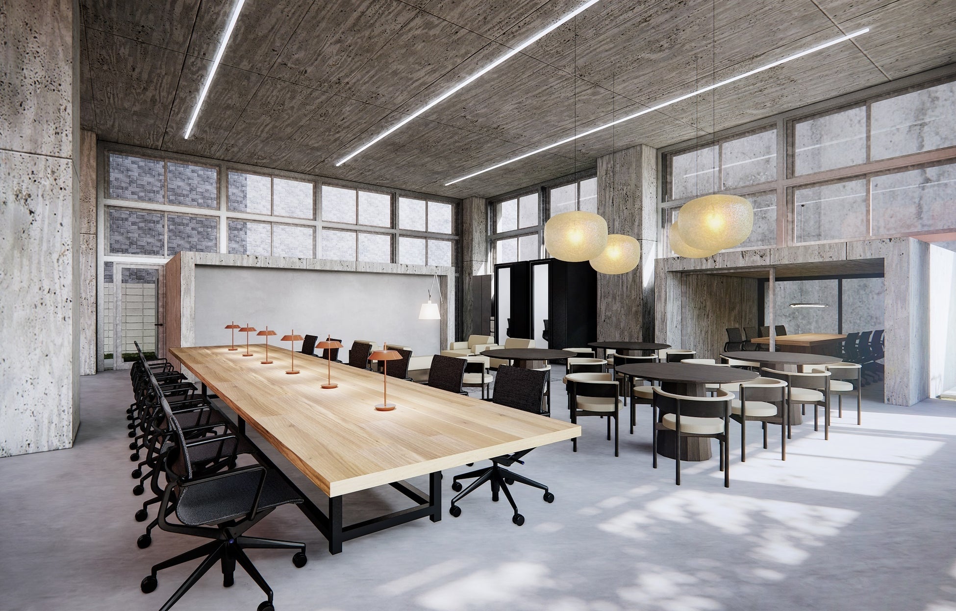 多様な人々が集い、様々な使い方を許容する余地を持つ空間。柱・梁・床といったコンクリートの構造体にサッシをはめた極めてシンプルな構成で、可能な限り要素を絞り既製品や工業製品を使って意匠性を排除することで実現。