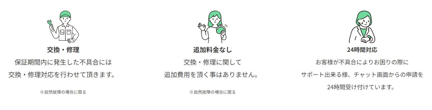※保証対象:正常な使用状態において、万一製造工程上の問題により製品に支障をきたした