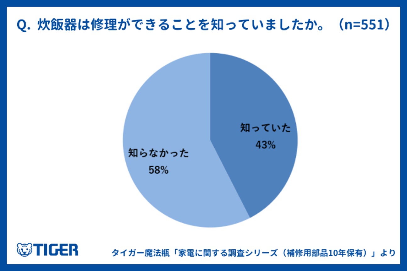 【タイガー魔法瓶・家電に関する調査シリーズ (補修用部品10年保有) vol.2】あなたのお気に入りの炊飯器、まだ使えたかも?約半数以上の人が炊飯器を修理できる事実を知らずに買い替えを選択