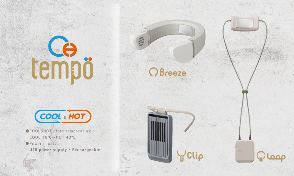 生活関連用品の企画・開発・販売を行う株式会社ドウシシャ(大阪本社:大阪市中央区、代表取締役社長:野村 正幸)は、ペルチェ素子プレートを活用したCOOL&HOTデバイス「Tempo(テンポ)」シリーズから3機種「Tempo Breeze」「Tempo Loop」「Tempo Clip」を全国の家電量販店・専門店、ドウシシャの直販サイト「ドウシシャマルシェ」にて5月中旬に発売します。