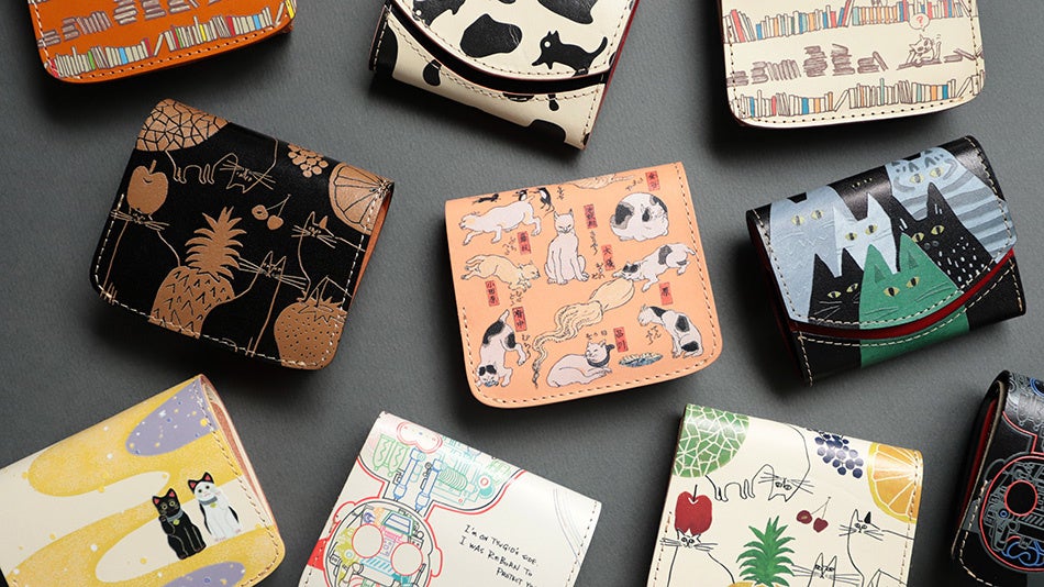 8/8 世界猫の日に登場。猫好きの革職人がハンドメイドする、京都の街並みと黒猫をデザインしたミニ財布。