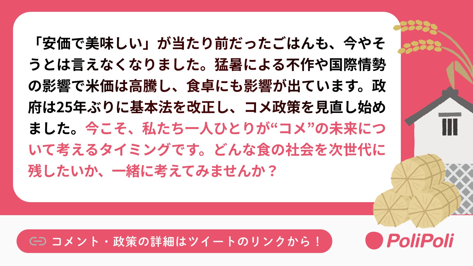 「これからのコメ政策を考えよう」:https://polipoli-web.com/projects/QTP1yCHmVFcpJdQjp3CU/story
