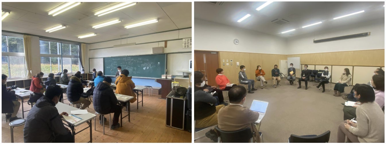廃校内で実施した座学や、肩書を超えてフラットに語り合うダイアローグの様子。