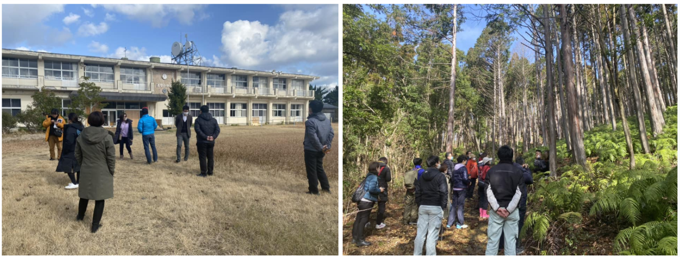 活用されない廃校を見学したり、間伐の重要性を学ぶフィールドワークの様子