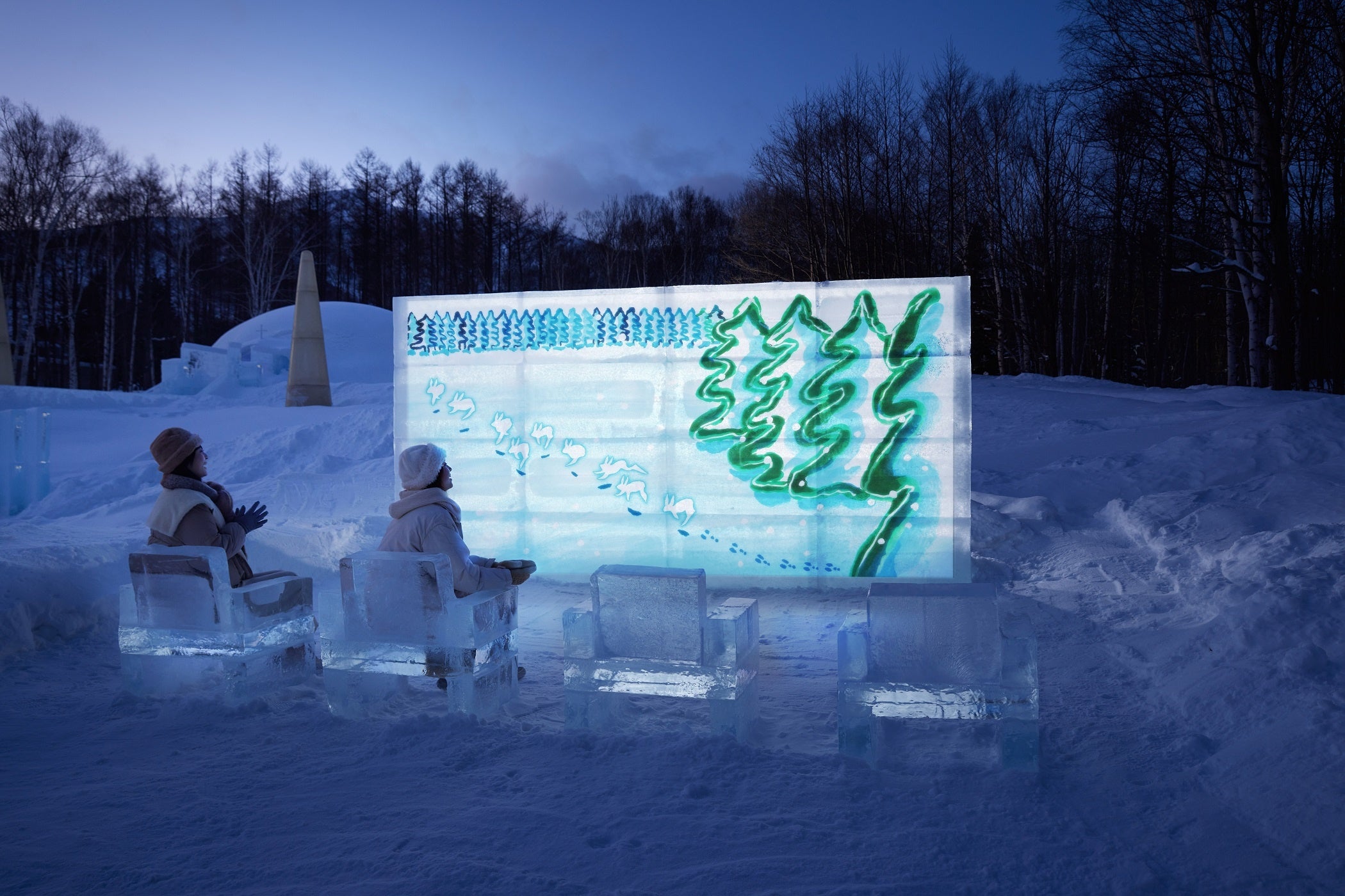 アイスヴィレッジの野外スペースに、氷でできたスクリーンでショートムービーを観賞する氷のシアターが登場します。氷のシアターはスクリーンも椅子も氷。アイスヴィレッジ内のショップでポップコーンやドリンクを買って、氷の街ならではのシアターを楽しむのがおすすめです。ショートムービーは北海道在住の絵本作家である、あべ弘士氏のオリジナル作品です。さまざまな動物が登場して物語を紡ぐハートウォーミングな内容です。マイナス30度の氷の世界でありながら、心温まる物語を楽しむことができます。