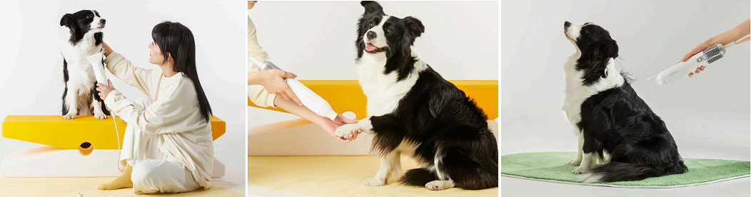 自宅でペットのシャンプー後、散歩の途中で濡れてしまったペットの体毛をあっという間に乾かします。