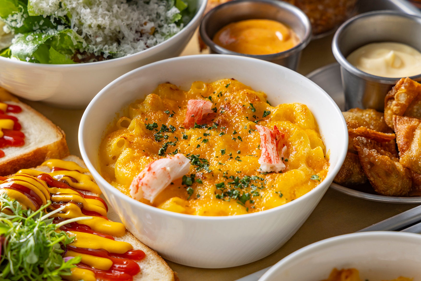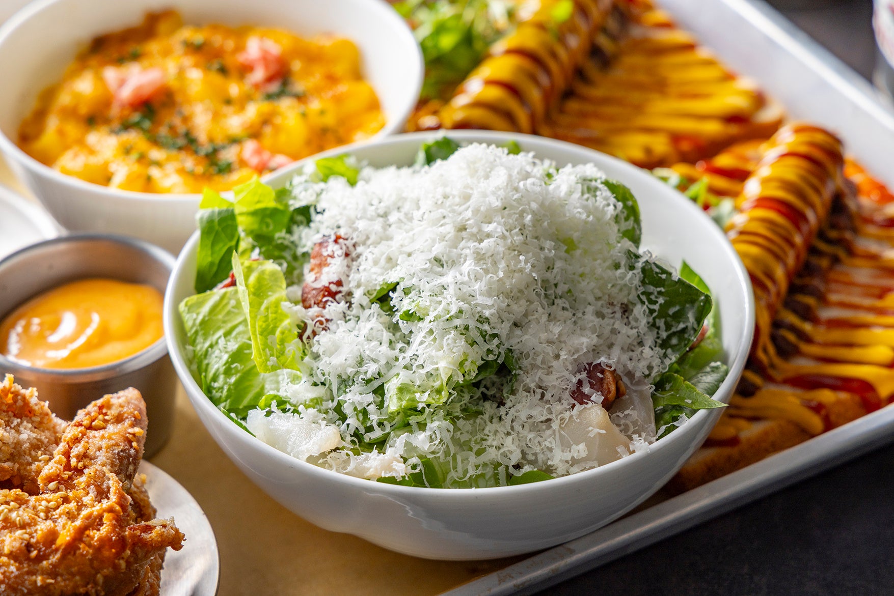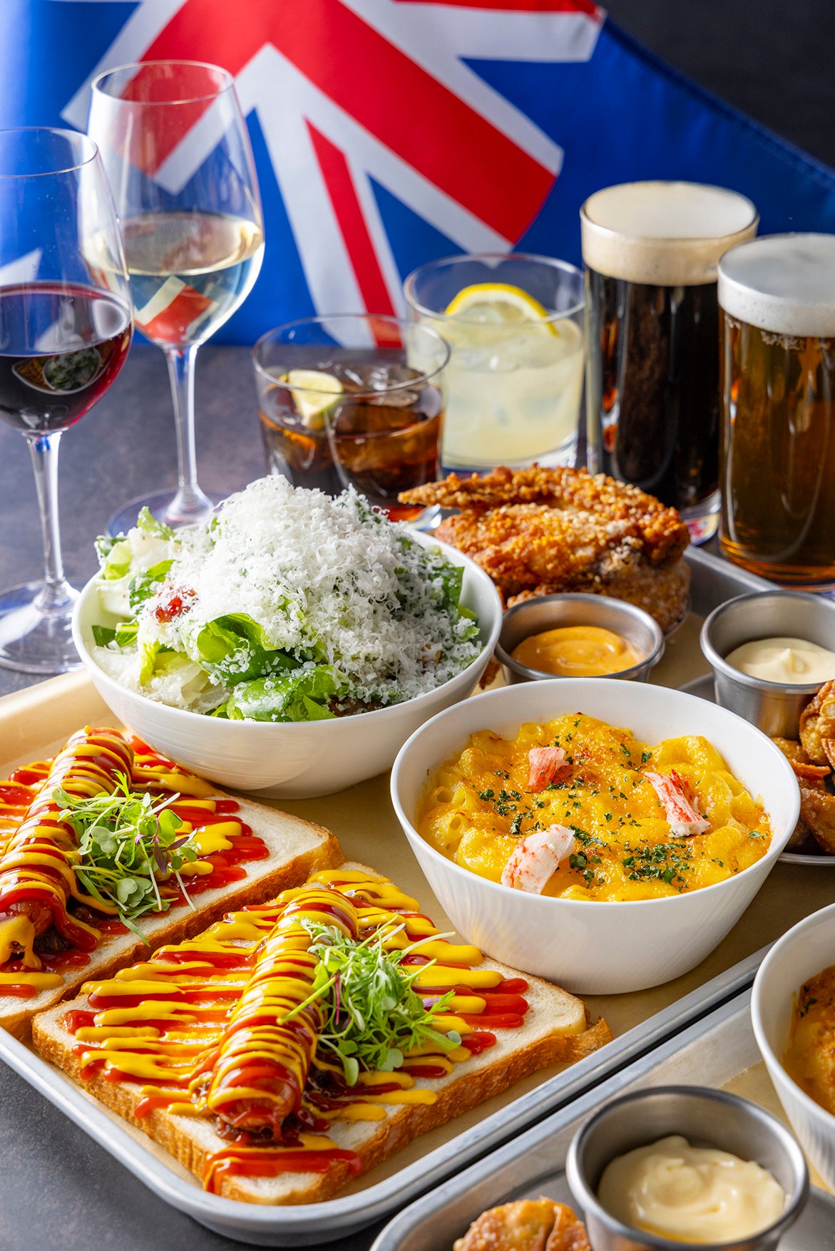 ビアガーデンでご提供するお料理は、ヒルトン東京 総料理長 マンダー・マダヴによる本格オージー料理。多文化国家オーストラリアで広く親しまれている料理を中心に、各種ドリンクとの相性を考え抜いた6種類のメニューを特製プラッターに盛り込みました。食パンに焼きたてのソーセージを挟んだ「オーストラリア バニングスサンド」は、週末の屋台で親しまれているオーストラリアならではの一品。キャラメリゼオニオンとたっぷりのケチャップ、マスタードで豪快にお召し上がりいただけます。「セサミチキンウィング」は、カリッと香ばしく揚げたチキンをオーストラリアで親しまれているマーマイトを使用した特製ソースとともにご提供します。また、シドニーのヘイマーケットのアジアンフードシーンを思わせる「ヘイマーケットスタイル 一口サイズのパリパリ餃子」は、ビールとの相性も抜群。レモンアイオリソースとともにお楽しみください。その他「クラシックポテトフライ」や「スモークコッドのシーザーサラダ」など、バラエティ豊かなラインアップをご用意しています。