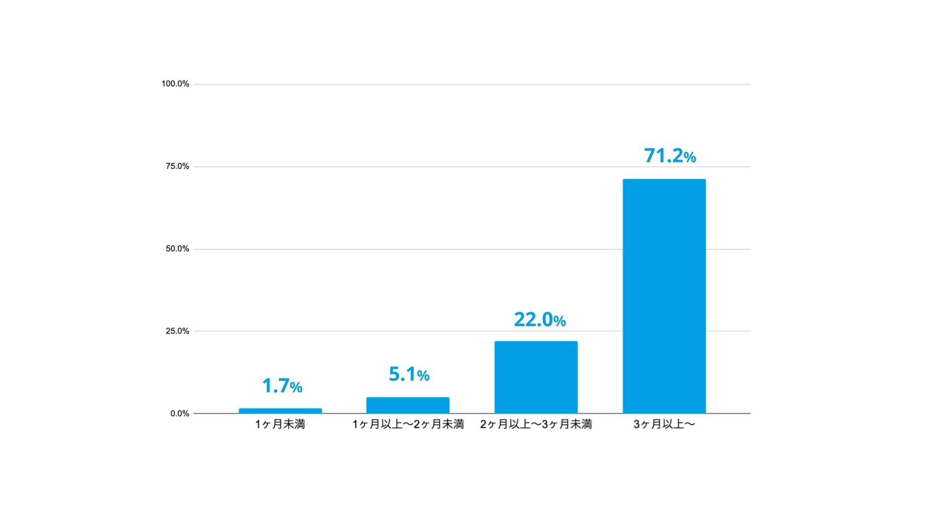 就業期間については、「3ヶ月以上」が最も多く、全体の過半数を占めました。