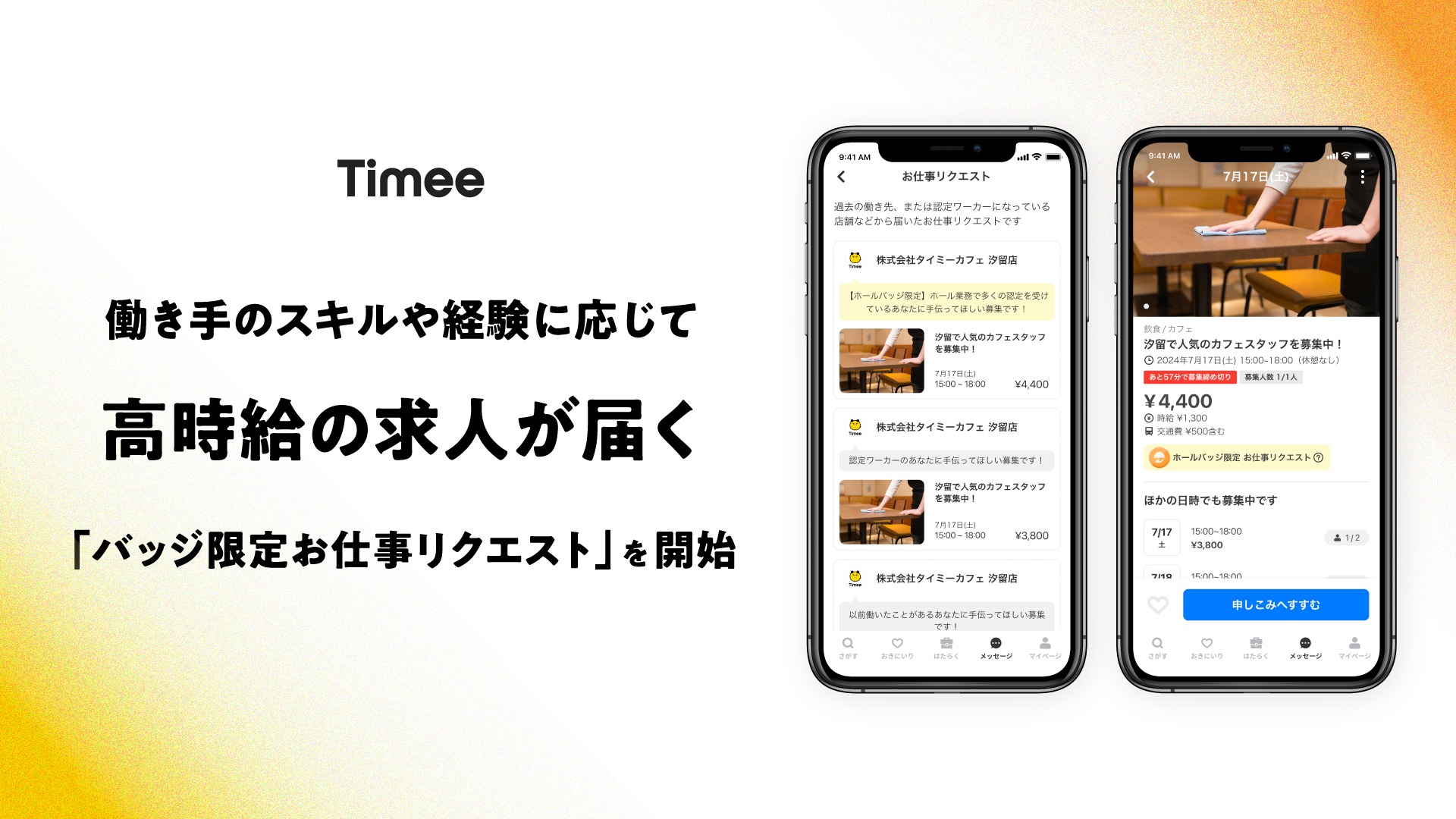 タイミー、働き手のスキルや経験に応じて高時給の求人が届く「バッジ限定お仕事リクエスト」を開始