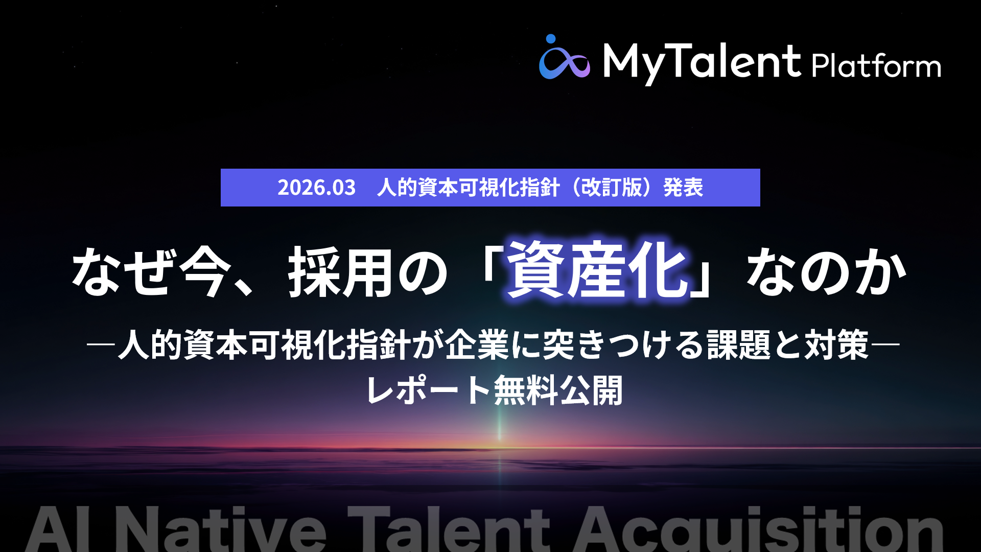 株式会社TalentX(本社:東京都新宿区、代表取締役社長CEO:鈴木 貴史、証券コード:330A、以下「当社」)は、2026年3月に改訂された「人的資本可視化指針」および有価証券報告書への開示義務化を見据え、企業が取り組むべき採用変革をまとめた最新レポート「なぜ今採用の「資産化」なのか - 人的資本可視化指針が企業に突きつける課題と解決策」を公開したことをお知らせいたします。