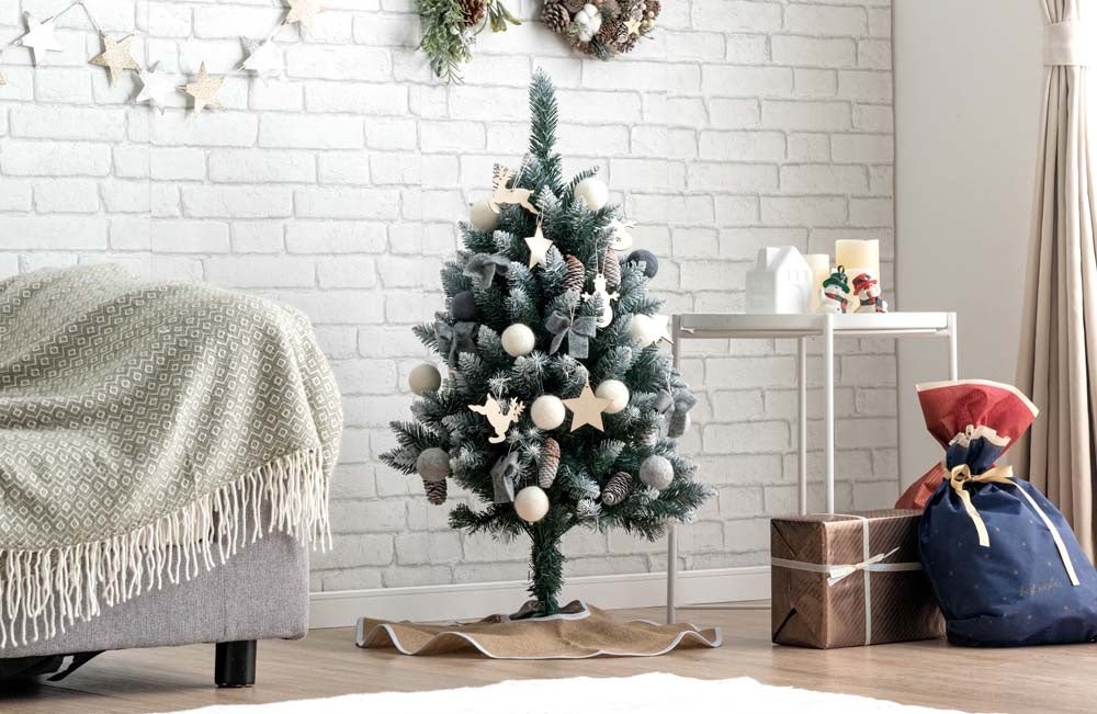 昨年までは高さ120/150/180cmで展開しておりましたが、より多くのお客様にツリーを楽しんでいただけるよう、省スペースでも設置しやすい高さ90cmのツリーを発売しました。省スペースで飾っていただけることは勿論、小さなお子様でも一緒に飾り付けを楽しんでいただけるサイズとなっております。床置きでの設置やスツールなどの上に置いて少し高さを上げて設置することもできます。