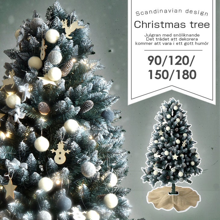 ■オーナメント&LEDライト付北欧デザイン雪化粧クリスマスツリーフルセット
