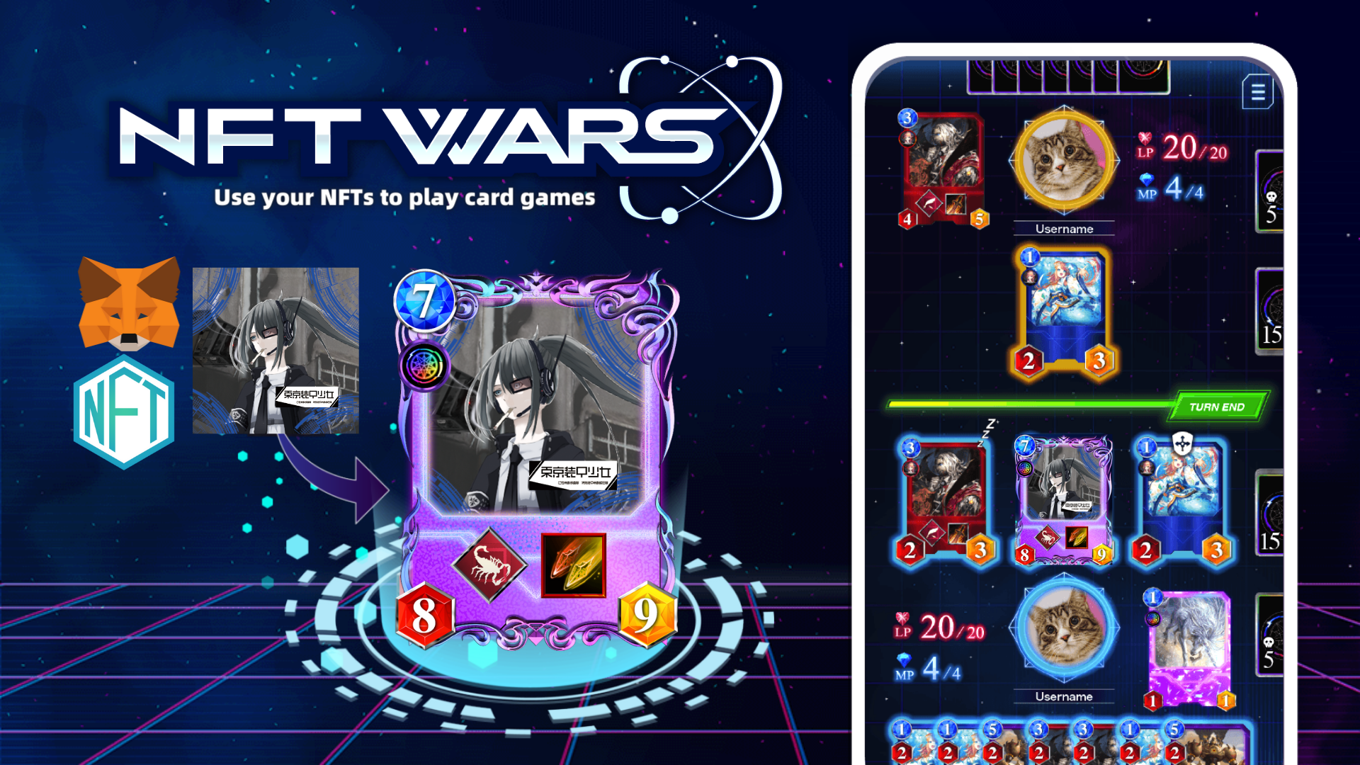 『NFTWars』は、手軽にNFTプロジェクトにゲームのユーティリティを付与できるサービスです。ユーザーはウォレットで所有するNFTを使用し、様々なNFTプロジェクトのカードゲームで遊ぶ世界の実現を目指します。