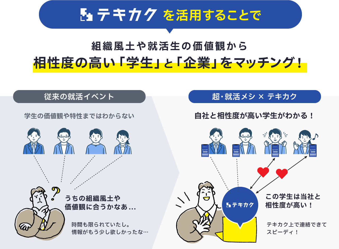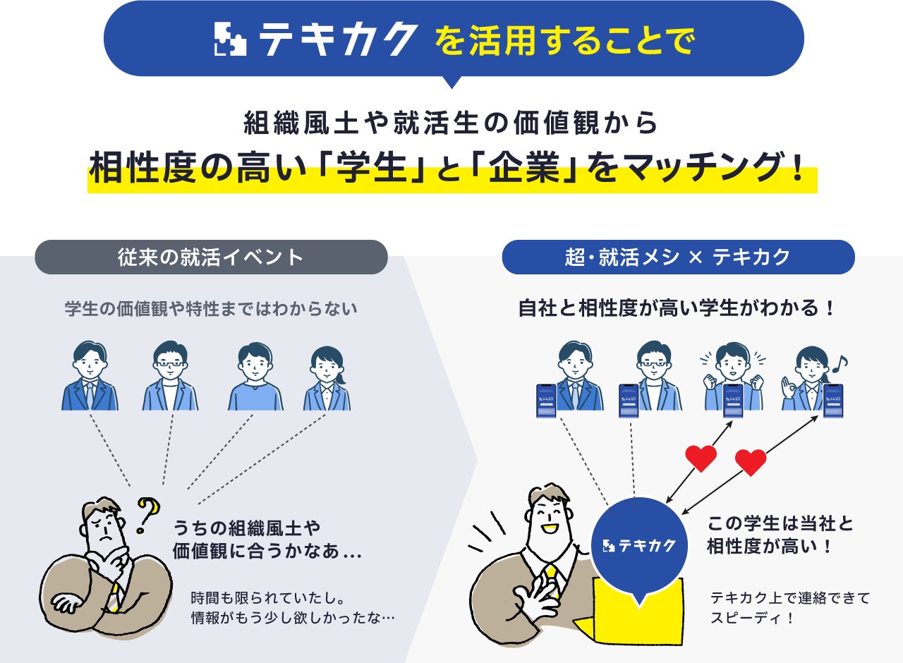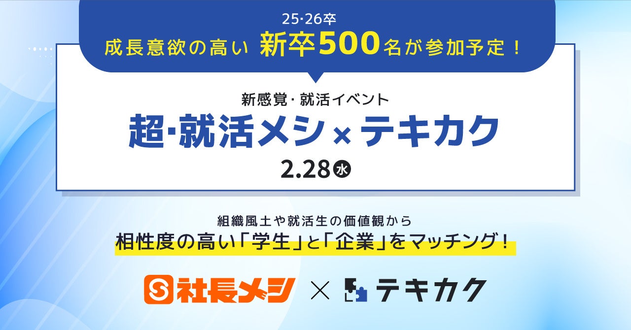 組織風土や価値観から、相性度の高い学生と企業をマッチング!最大500名の25・26新卒が参加する新感覚・就活イベント「超・就活メシ × テキカク」の開催が決定!