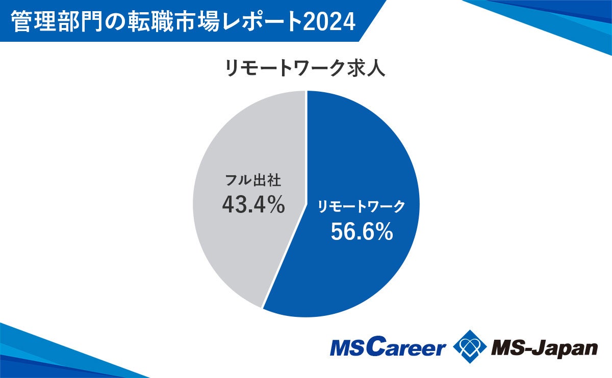 2023年に募集された管理部門求人のうち、56.6%は「リモートワーク」が採用されていました。