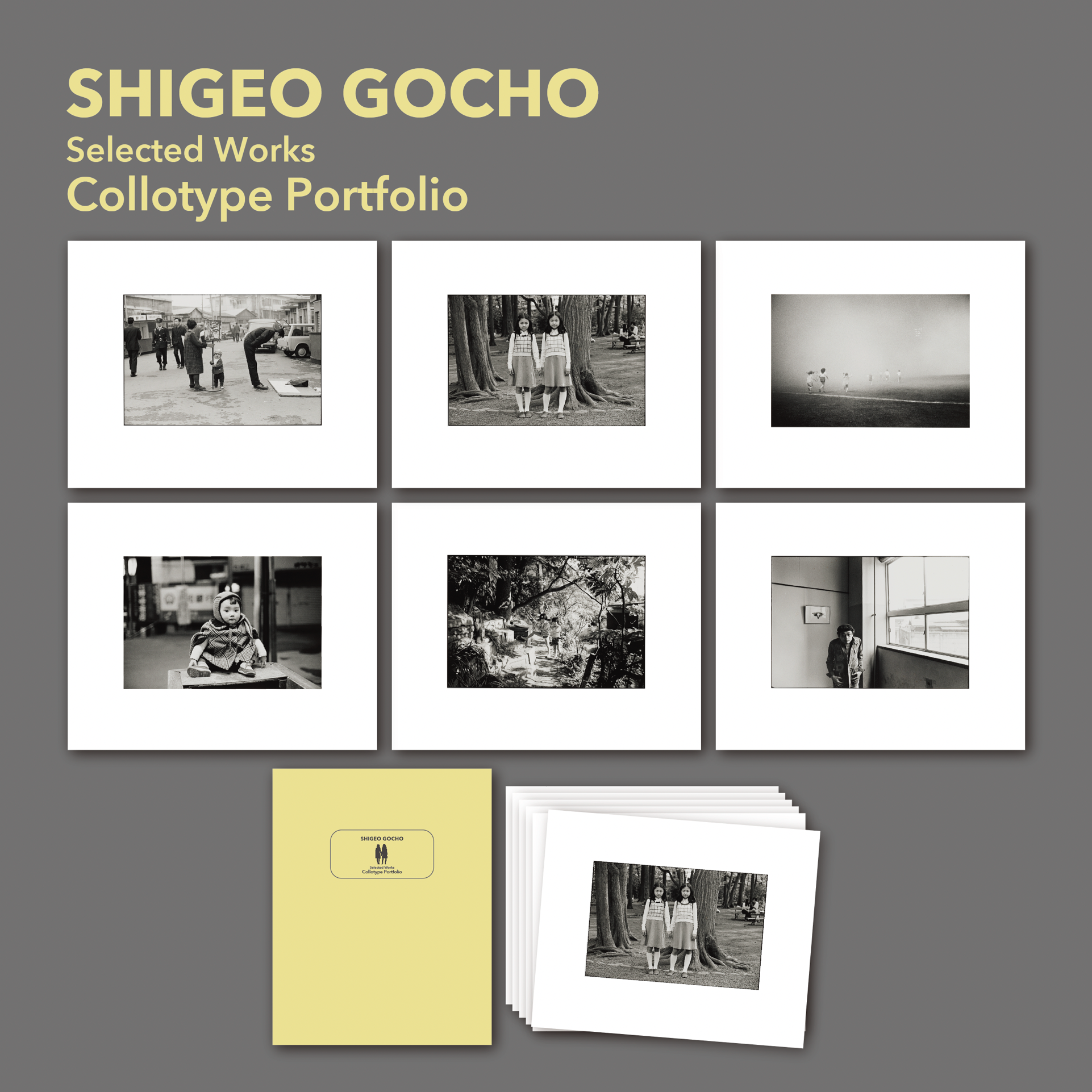 牛腸茂雄さんのグッズは、世にほとんど存在しません。本展の開催を記念してオリジナルグッズをご用意しました。グッズは、会場のみでの販売を予定しています。また牛腸さんの作品から6点を選んだ「ポートフォリオ」も販売します。「コロタイプ」という技法をつかって緻密な部分まで、再現されています。実際に会場で、お手にとってご覧ください。