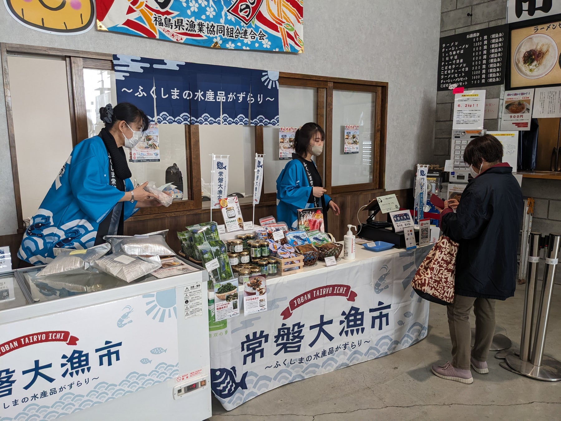 道路利用者の休憩施設であるとともに、利用者と地域のふれあいの場でもある道の駅で、福島の美味しい水産品をぜひ試食してお買い求めください。