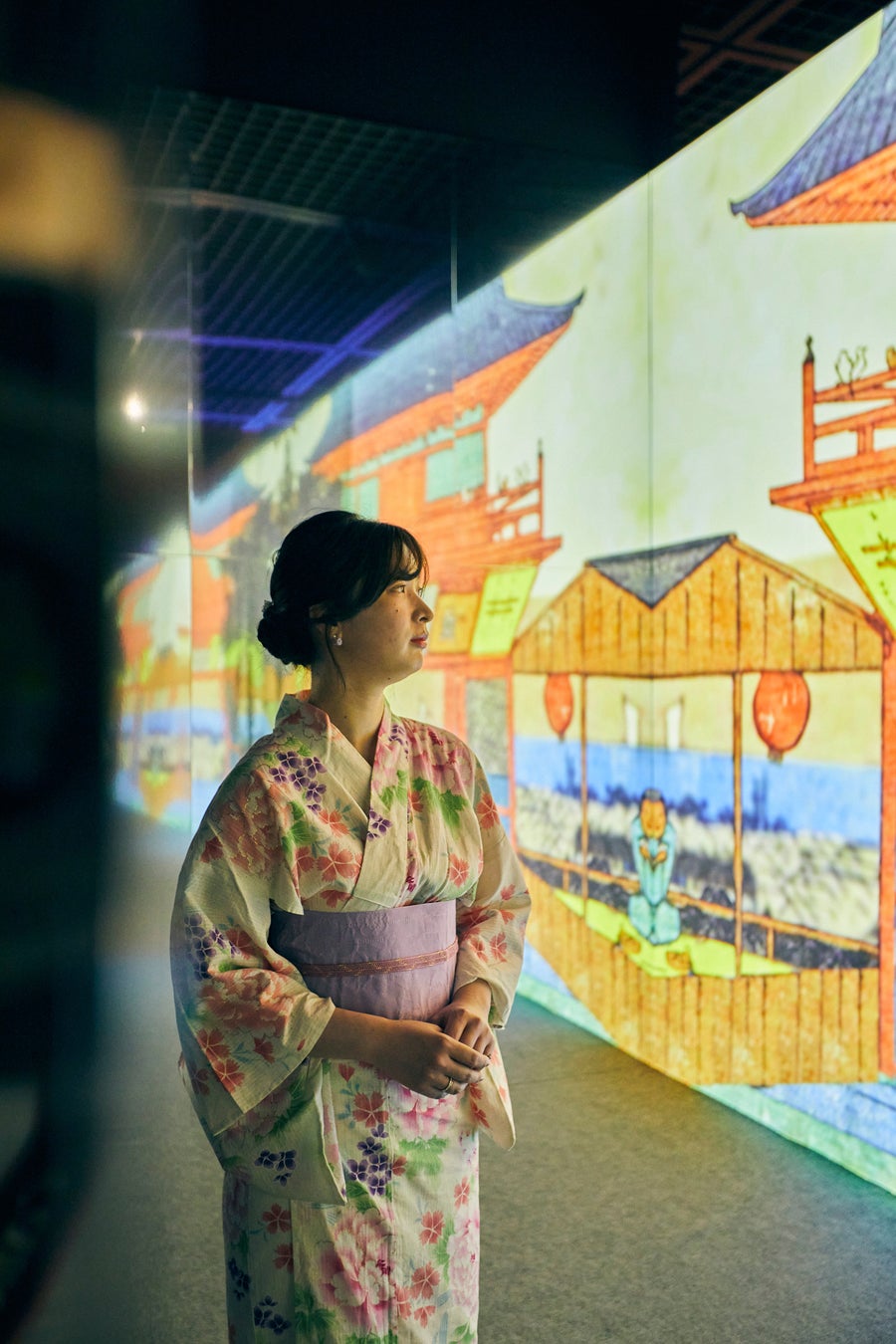 【内容】 葛飾北斎、歌川国芳、歌川広重、喜多川歌麿、東洲斎写楽、歌川国貞など世界的な浮世絵師の作品300点以上をもとに、3DCGアニメーションやプロジェクションマッピングを駆使して大人から子どもまで楽しめるグラフィカルなデジタルアート作品として描き、約10エリアの立体映像空間で浮世絵の世界に没入できるイマーシブ体感型デジタルアートミュージアムです。