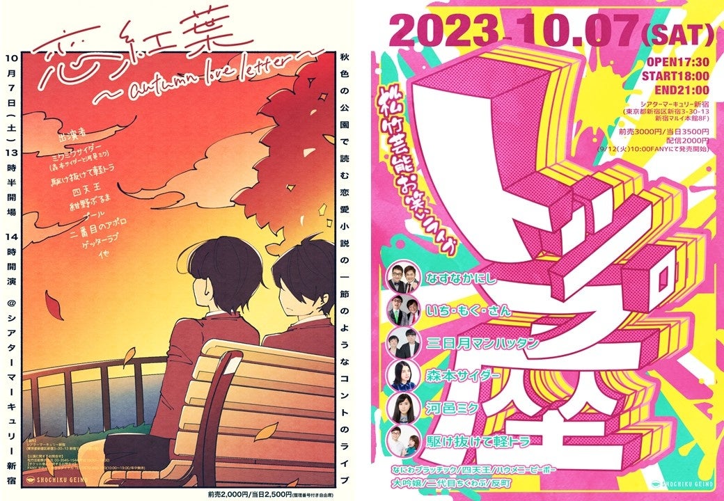 松竹芸能人気お笑いライブ「トップ座」がリニューアル!10月より隔月第1土曜日に、シアターマーキュリー新宿にて開催決定!10月7日(土)のリニューアル初回の当日は恋愛コントライブ「恋紅葉」も開催!