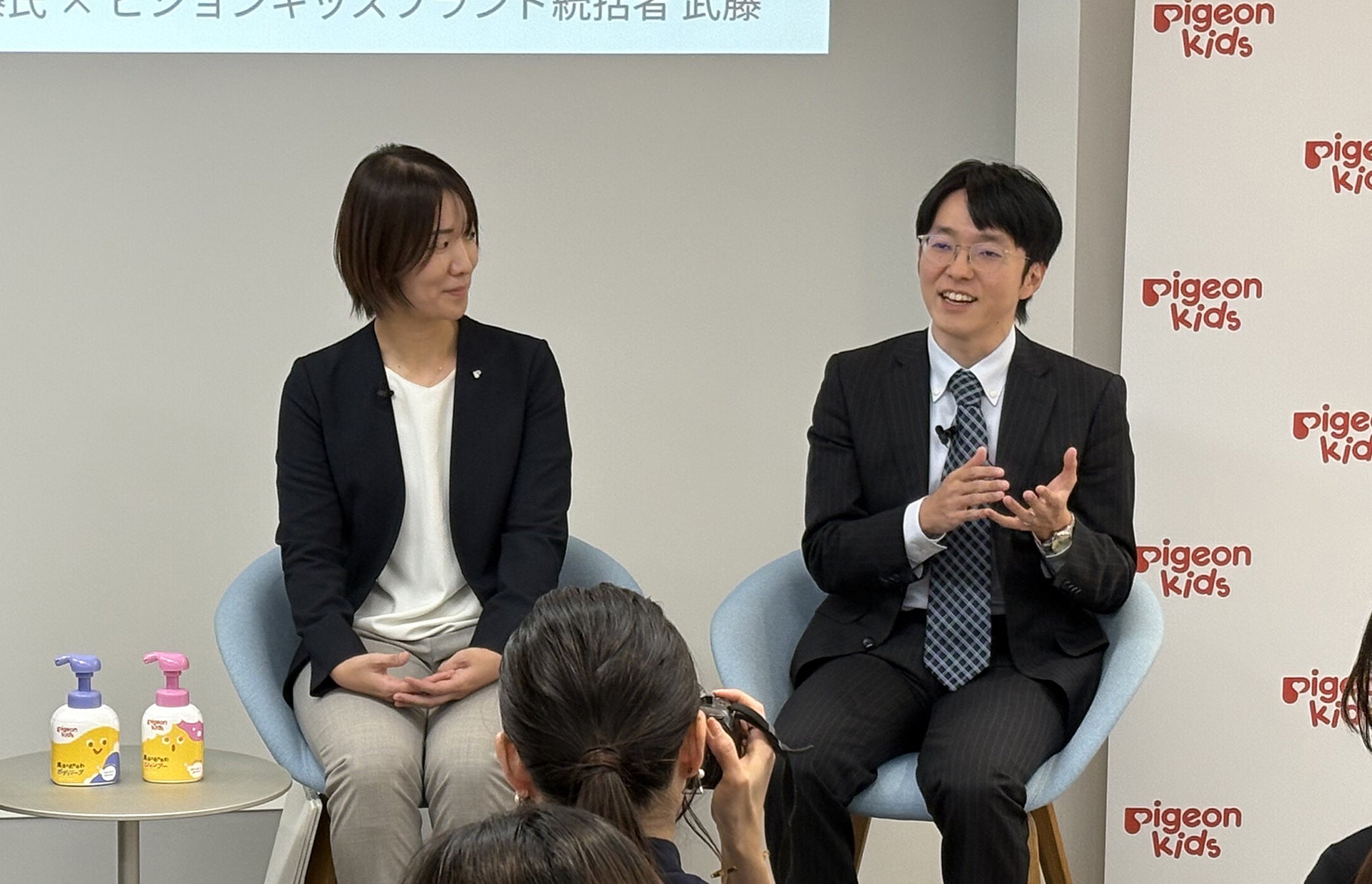 ピジョン株式会社(本社:東京都中央区、代表取締役社長:矢野 亮)は、2025年11月18日(火)に新ブランド「ピジョンキッズ」のメディア向け発表会を当社本社にて開催しました。本発表会には、当社社長・矢野 亮が登壇し、ピジョングループが掲げる新たな成長戦略と、キッズ市場への本格参入について発表しました。さらに、ゲストにエコノミストの遠藤裕基氏を迎え、新ブランド統括者とともに子育て費用の実態やベビーとキッズの変化など、経済の視点からキッズ市場に関する意見を交わしました。新ブランドである「ピジョンキッズ」は、共働き世帯の増加など社会構造の変化に伴う親のニーズに応え、2才~6才頃の未就学児に向けて、子どもの「やってみたい!」気持ちを引き出し自立を促す新商品を2026年2月より展開いたします。