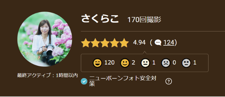ライセンスを取得したフォトグラファーは、プロフィール上に「ニューボーンフォト安全対策」済みのアイコンが表示されます。