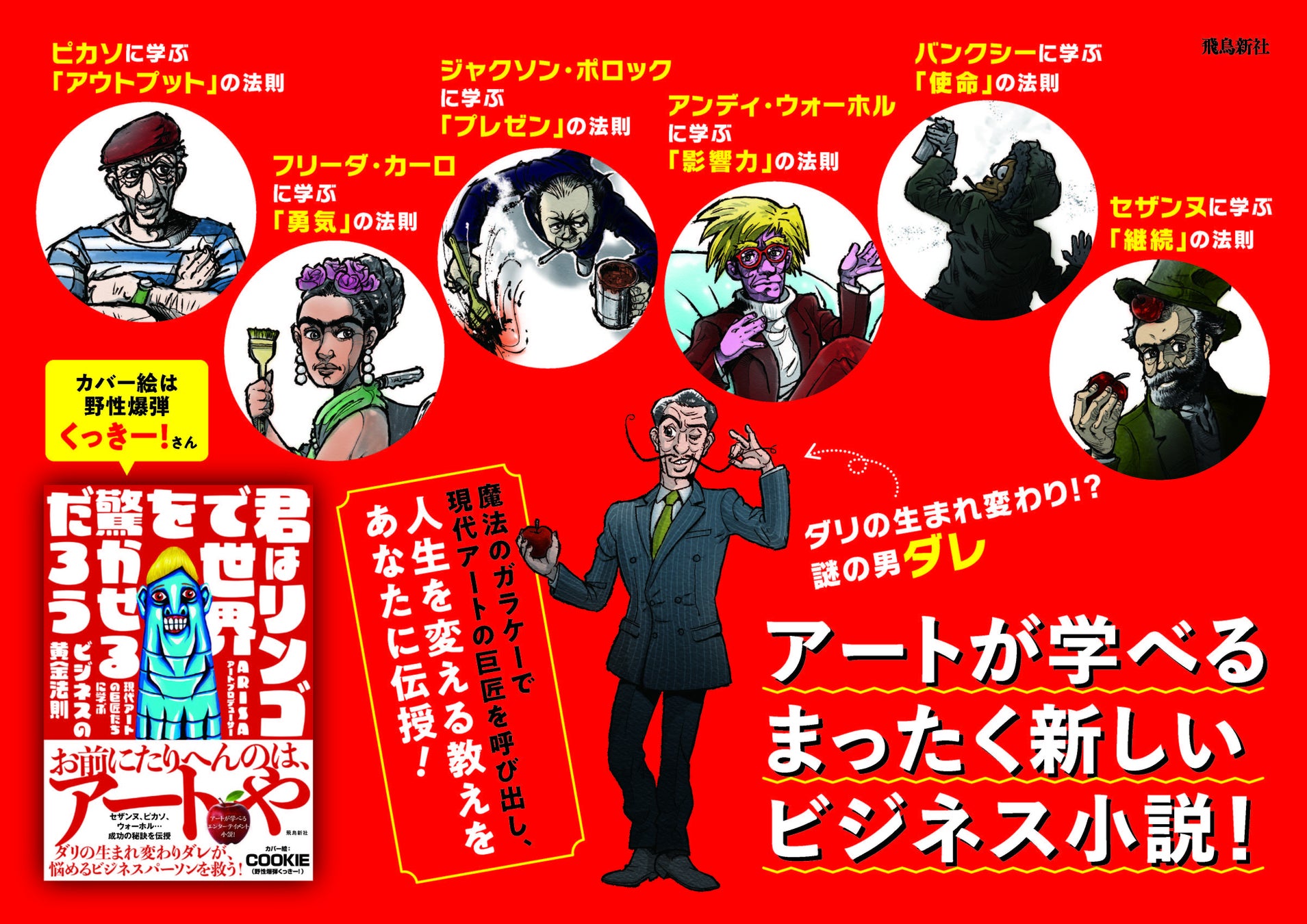 野性爆弾くっきー!さんのイラストが本のカバーに!注目必至!「アートの力」で人生を変えるビジネスエンタメ小説『君はリンゴで世界を驚かせるだろう』