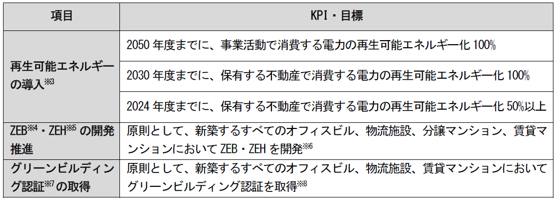 ②ビル事業における保有不動産の消費電力再エネ化達成目標を20年前倒し「2030年度までに100%再生可能エネルギー化へ」