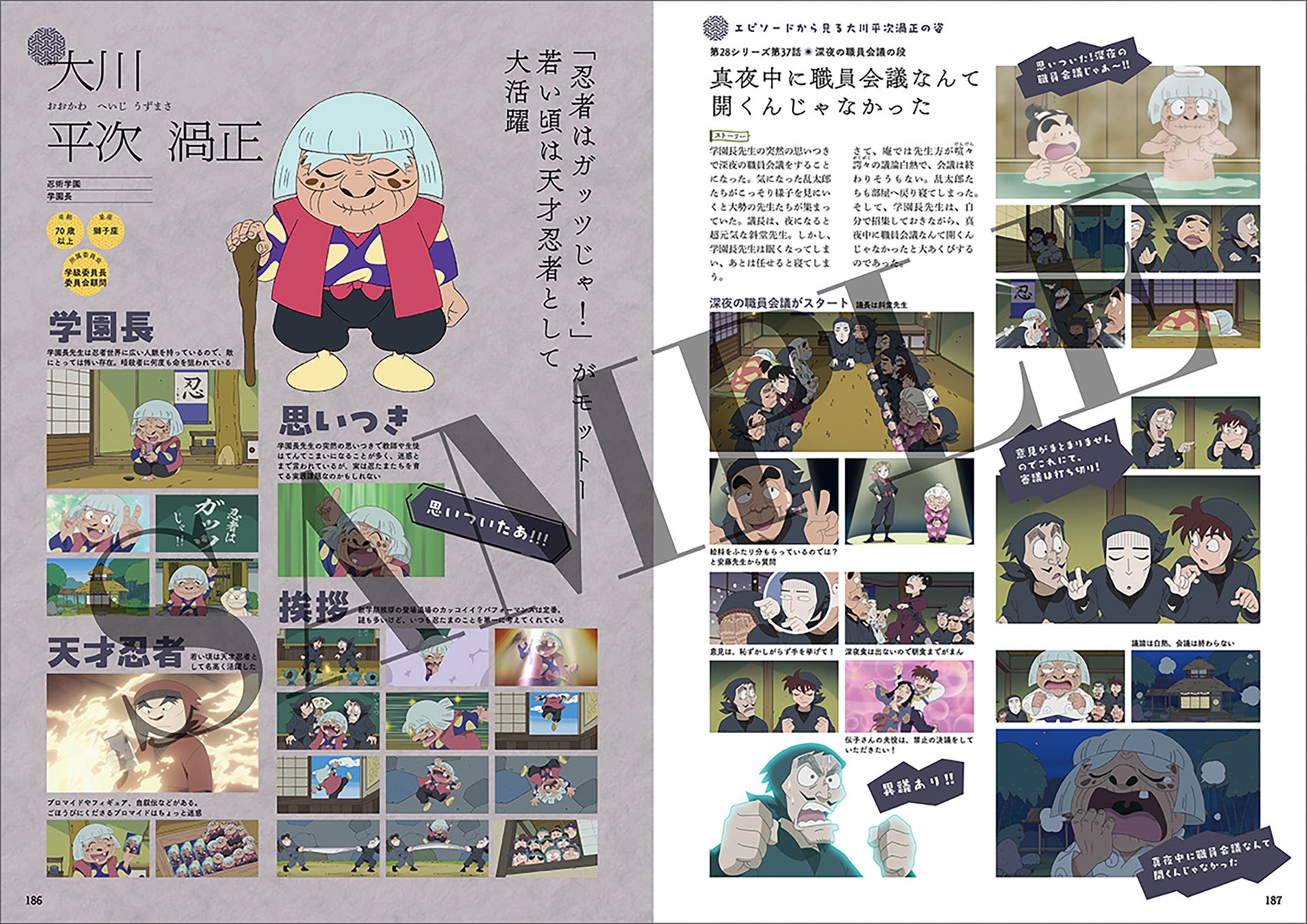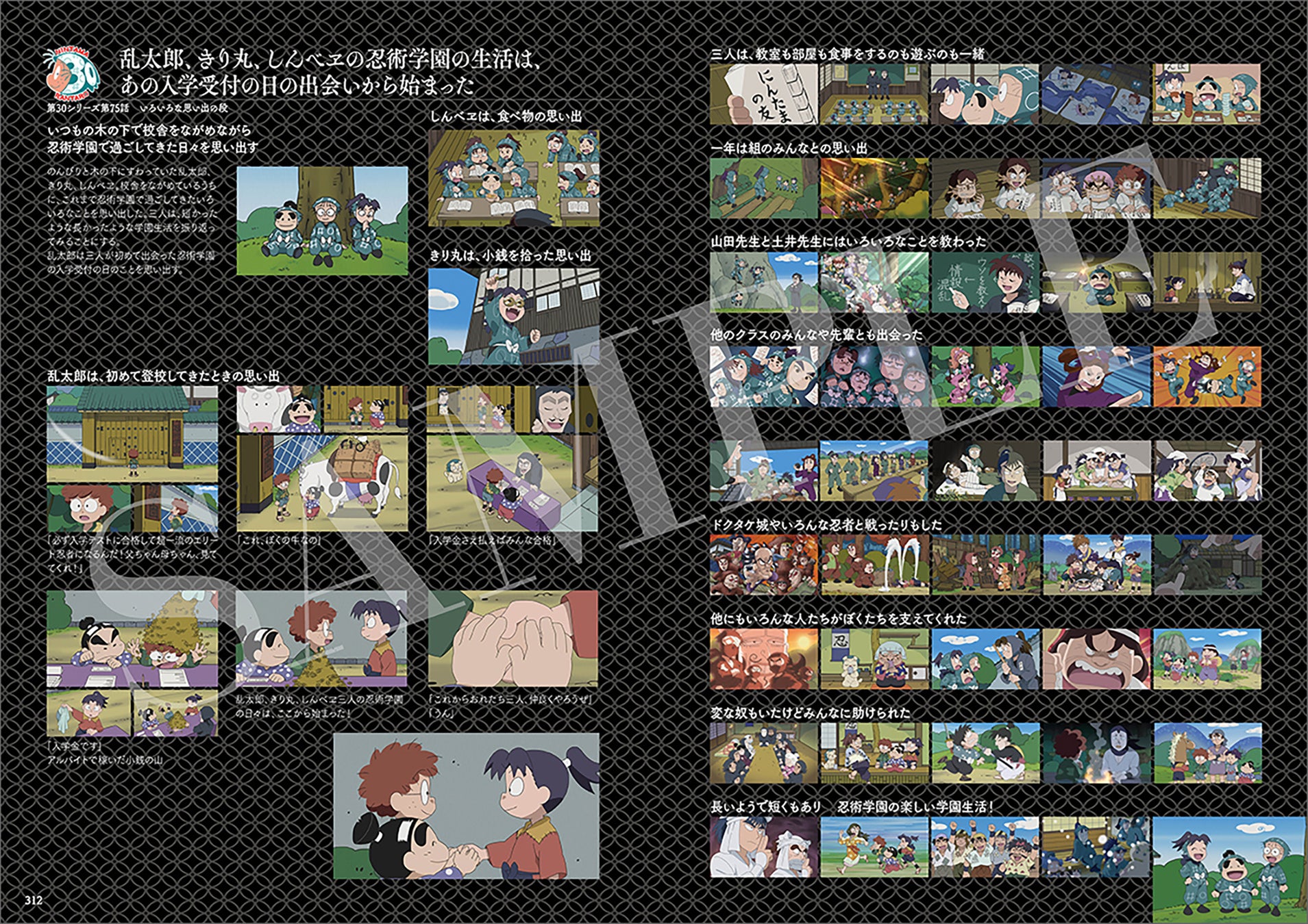 ファンの間では話題の原作者・尼子騒兵衛による「尼子プロット」や長編シリーズアニメ、忍術学園探訪などのコラム、第30シリーズテーマ曲など、貴重な場面写真満載です!