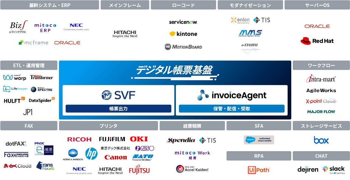 さまざまな業務システムや外部クラウドサービスとの連携が可能な拡張性を備え、既存システムの活用を促進することで、文書に関わる運用効率を向上させます。アライアンスパートナーの製品・サービスと相互の強みを掛け合わせることで、企業の「帳票DX」推進を支援いたします。