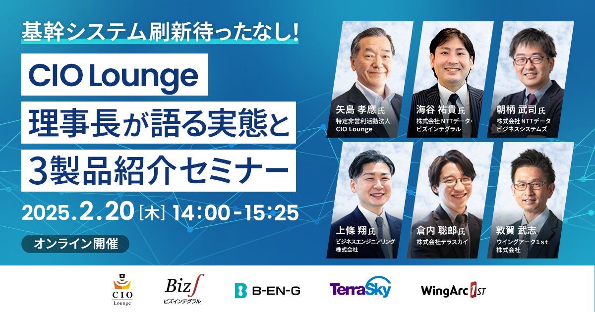 <2月20日(木)無料セミナー開催>基幹システム刷新待ったなし!CIO Lounge理事長が語る実態と3製品紹介セミナー