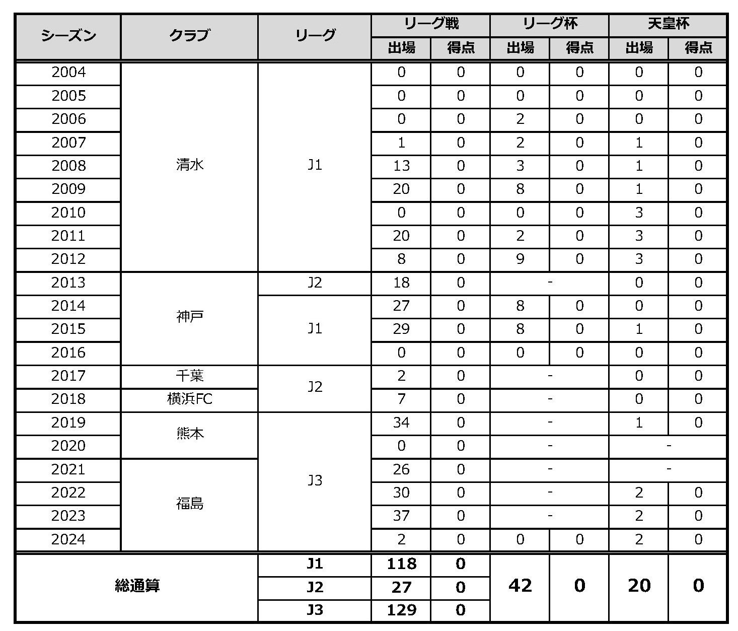 サッカー歴:清水FC→清水エスパルスJrユース→清水エスパルスユース→清水エスパルス→ヴィッセル神戸→ジェフユナイテッド千葉→横浜FC→ジェフユナイテッド千葉→ロアッソ熊本→福島ユナイテッドFC