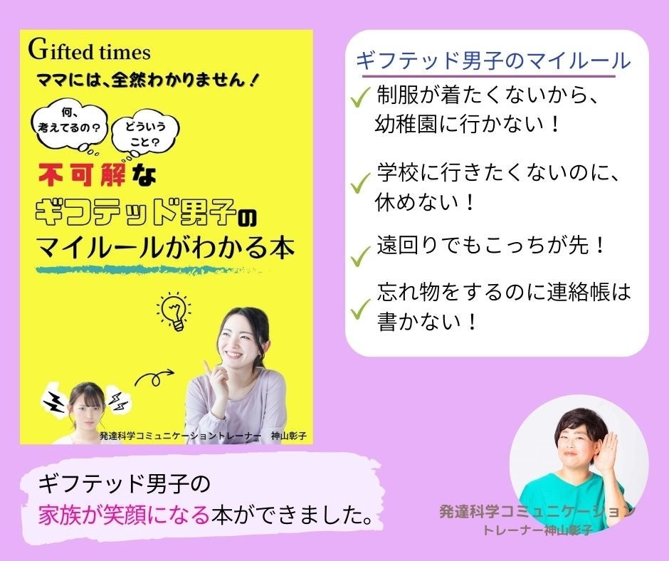 株式会社パステルコミュニケーション(本社:東京都豊島区、代表取締役吉野加容子)代表の吉野加容子が開発した、親子のコミュニケーションをスムーズにして子どもの発達を加速させる「発達科学コミュニケーション」講師・神山彰子による、『ママには全然わかりません!不可解なギフテッド男子のマイルールがわかる本』の電子書籍無料配布を開始。お申込みURL< https://www.agentmail.jp/lp/r/7548/70607/?pr>