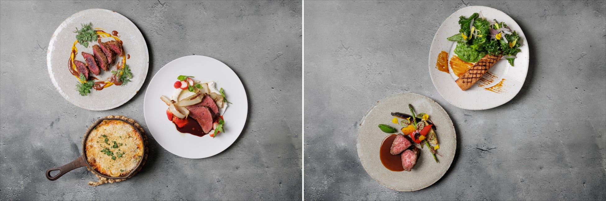 この春は、お肉やお魚を使った本格メインディッシュを拡充。おすすめは、京都「やまとある工房」の高品質な鹿肉を使用した「鹿ロースト 苺とバルサミコのソース」。丁寧な処理で臭みがない柔らかなお肉を、甘酸っぱい春のソースで味わえます。他にも「鹿レアカツレツ」や「サーモングリル」など、心身が満たされるメニューをご用意しています。