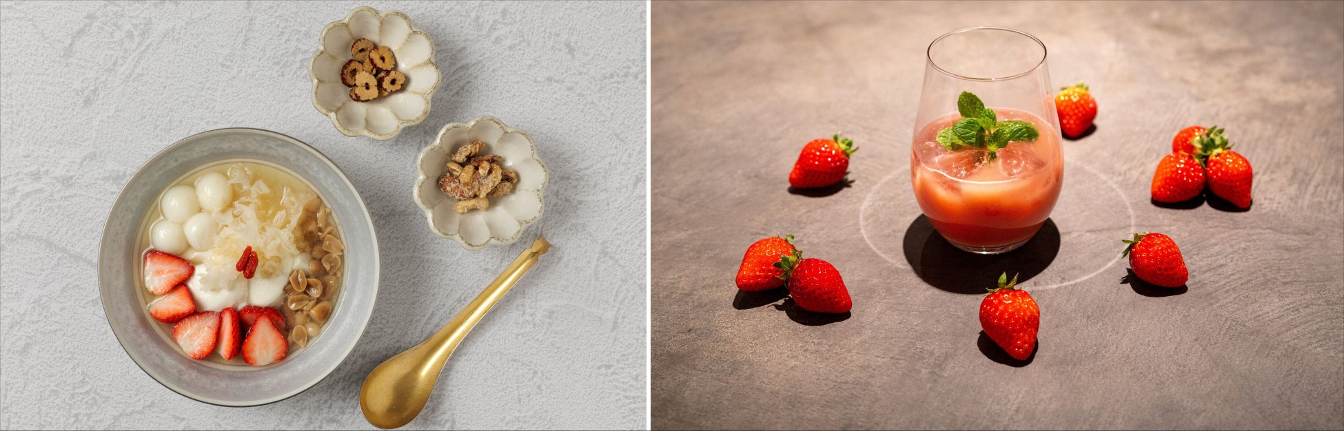 デザートは、定番の「季節の豆花(980円)」に加え、季節限定の「苺のパリブレスト(980円)」「柑橘のタルト(980円)」「抹茶のテリーヌ(980円)」が登場します。