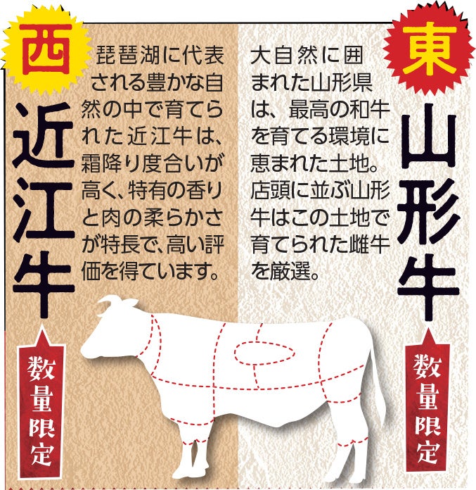 バイヤー厳選!西日本、東日本の美味しい銘柄肉をお楽しみいただけます。
