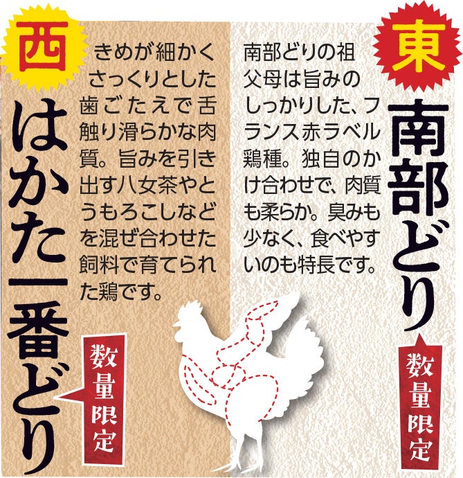 西日本地区からは、特有の香りと肉の柔らかさが特長の「近江牛」、ジューシーで旨みのある味わいの「長州謹成豚」、きめが細かくなめらかな舌触りの「はかた一番どり」をご紹介します。