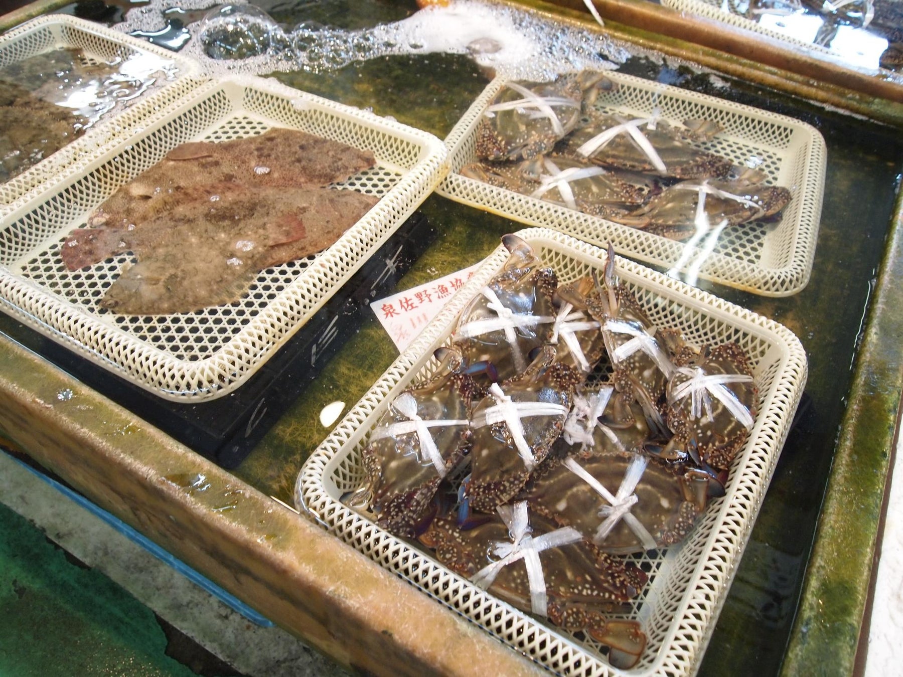 ③泉南で有名な「青空市場」でお買い物。(漁港の横の市場で海産物がおすすめ)